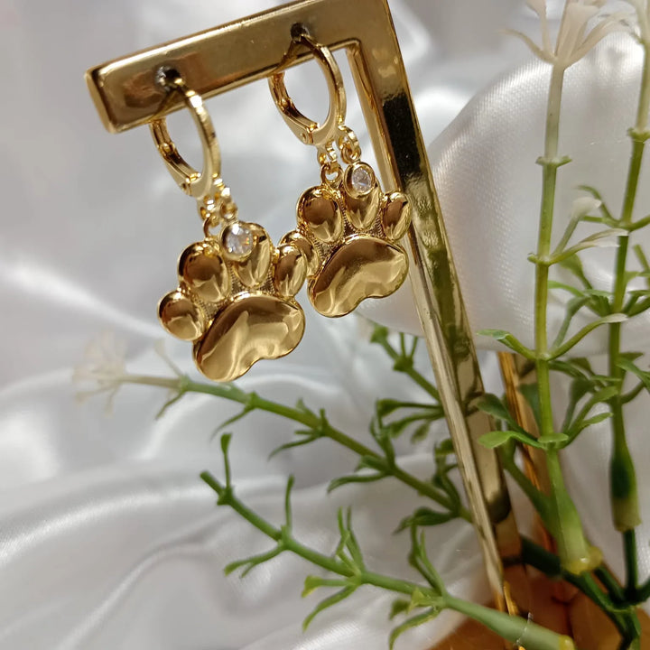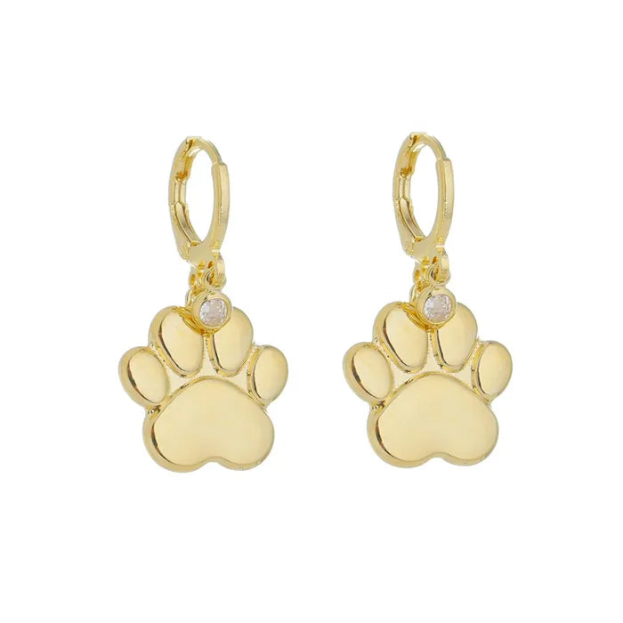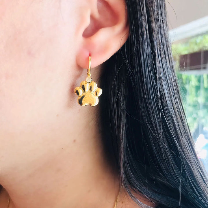 Brinco argolinha com pingente de pata e uma zircônia folheado em ouro 18K