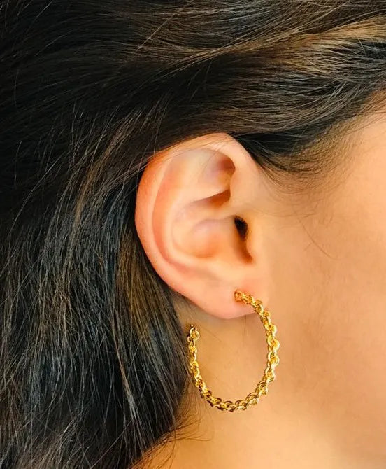 O brinco é uma argola semi aberta de correntaria com fecho de tarraxa, folheado em ouro 18k. As argolas são peças essenciais em seu porta-joias. O brinco argola de corrente é um acessório lindo e tem um design diferenciado que pode ser combinado com um fabuloso mix de brincos e piercings, escolha os acessórios Amarylis que mais combinam com você e aproveite.