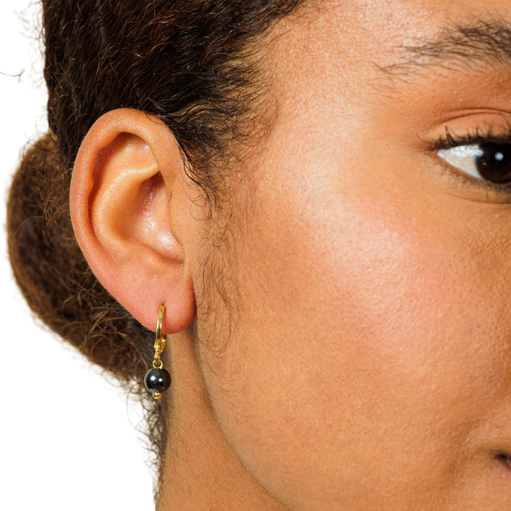 O brinco é confeccionado em metal, disponível nas versões folheada em ouro ou banho de prata, apresentando uma argolinha clássica com pedra natural de hematita pendente. O design discreto e elegante destaca a intensidade do grafite da hematita, em contraste harmonioso com o brilho metálico. Ideal para uso individual ou combinado com outros brincos, proporcionando versatilidade e sofisticação ao visual. Joia exclusiva Amarylis Semijoias, perfeita para quem busca originalidade, modernidade e charme em todos os detalhes.