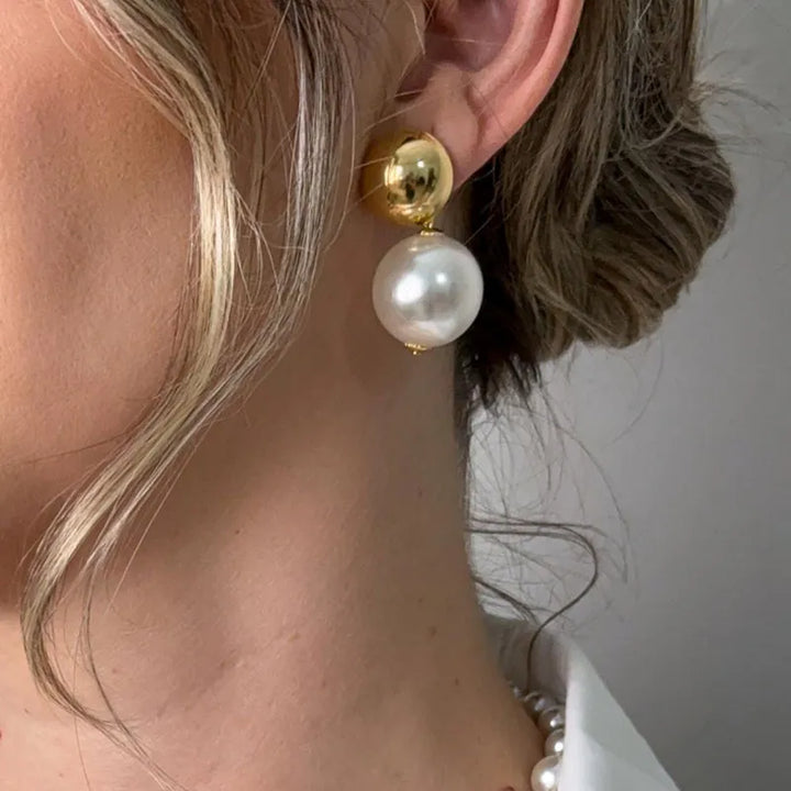 Brinco de pérola grande pendurada dourado ou prata folheado