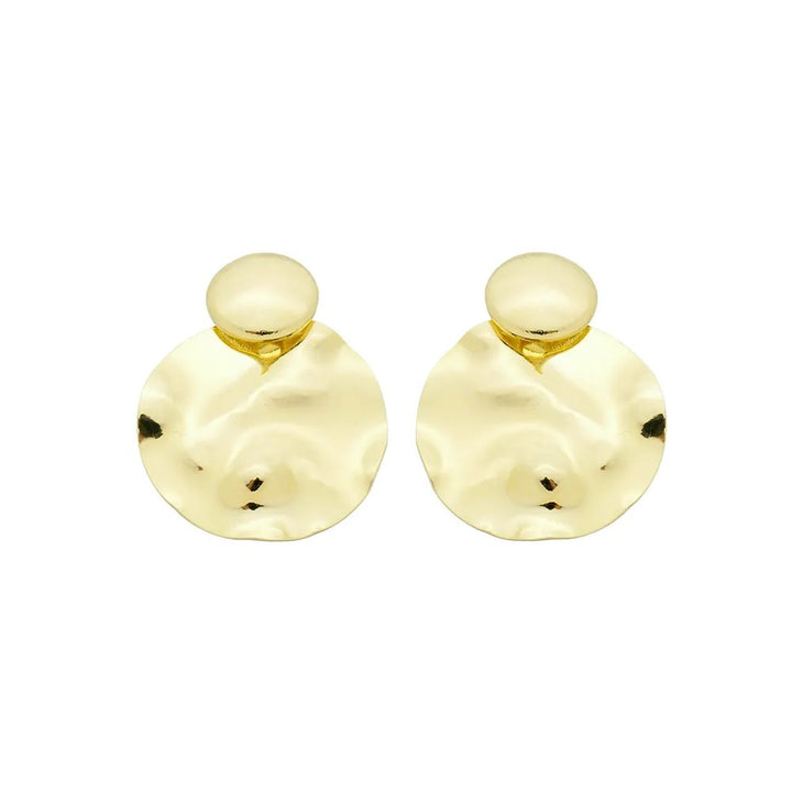 Brinco orgânico folheado, com design texturizado e formas fluidas que remetem à natureza. Composto por duas peças circulares sobrepostas, a superior é lisa e a inferior apresenta um acabamento martelado, conferindo charme e elegância artesanal à peça. Ideal para quem busca um acessório sofisticado e atemporal, perfeito para complementar tanto looks casuais quanto formais.