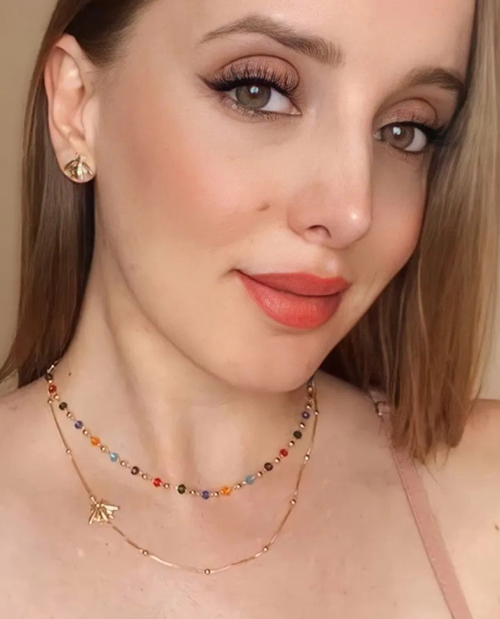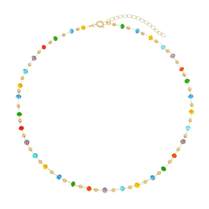 A choker colorida tem a corrente composta por mini bolinhas douradas e miçangas nas cores: verde escuro, vermelho, roxo, azul claro, laranja e azul escuro, fecho mola, folheado em ouro 18k. A choker miçangas coloridas é ótima para compor vários looks, ela pode ser usada com colares maiores lisos e com um maravilhoso mix de brincos. Além disso as miçangas coloridas estão super em alta. Veja essa e outras peças no site da Amarylis semijoais.