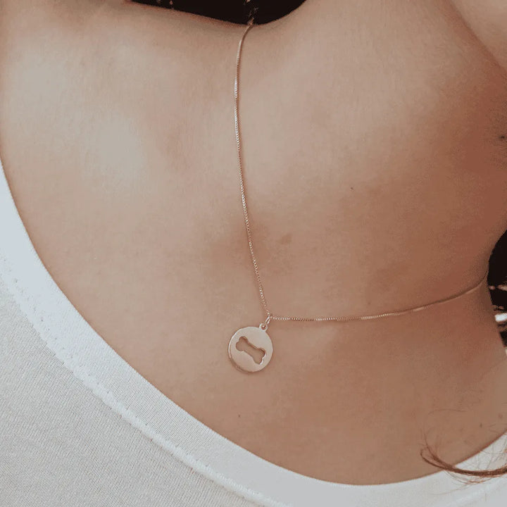 O colar com medalha de ossinho folheado em ouro 18k é perfeito para as Love Pets, tem leveza, delicadeza. Um verdadeiro charme!!! O pingente é redondo e nele há o recorte de um ossinho no meio, a corrente é veneziana. Pra você que é apaixonada em animais, a Amarylis traz várias opções de semijoias para seu bichinho de estimação estar sempre com você!
