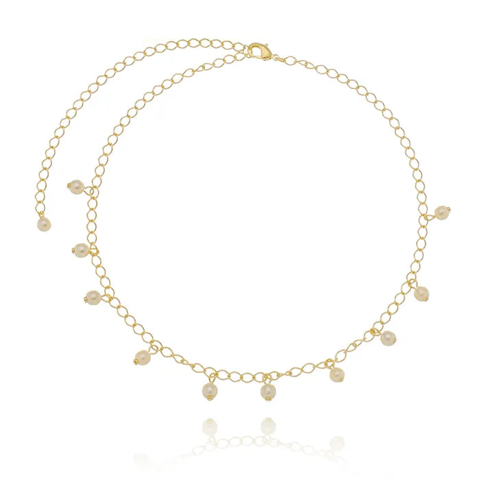 O colar é folheado em ouro 18 K e possui dez pérolas intercaladas. O colar é muito bonito e você pode fazer um mix perfeito com as peças aqui do site.