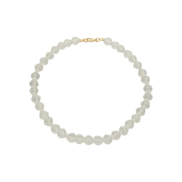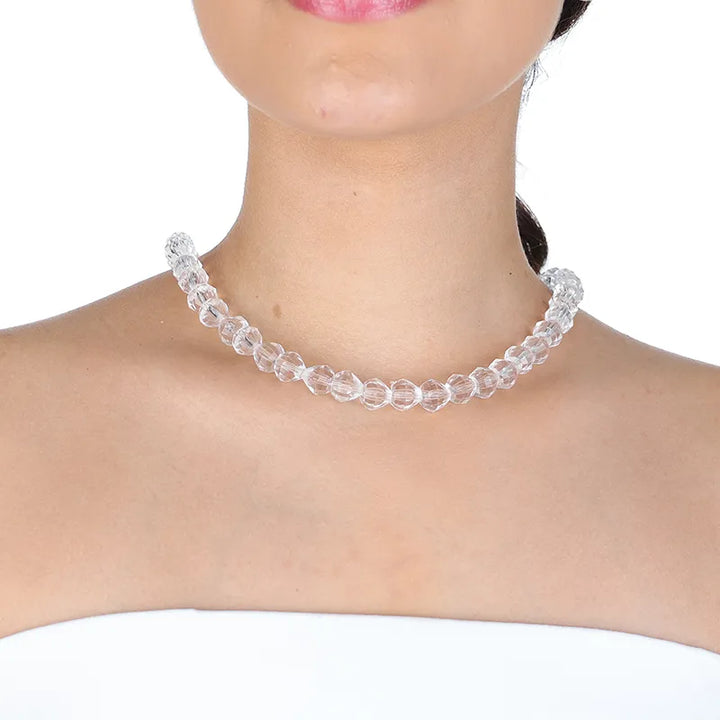 Colar de acrílico Transparente é feito com contas transparentes em formato de gota. As pedras são unidas por um fio de nylon resistente e finalizados por um fecho dourado. O Colar de acrílico Transparente é delicado e versátil, combinando com diversos estilos. Ideal para usar sozinho em looks mais básicos ou com decote aberto, valorizando a transparência das pedra.