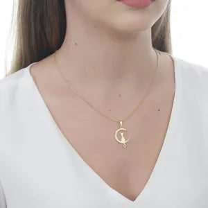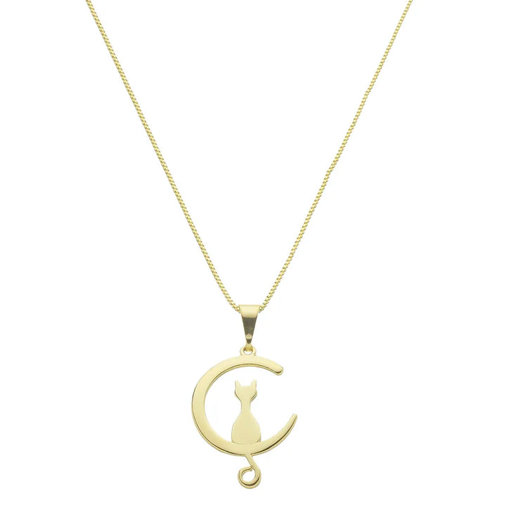 Colar de gatinho sentado na lua folheado em ouro 18K