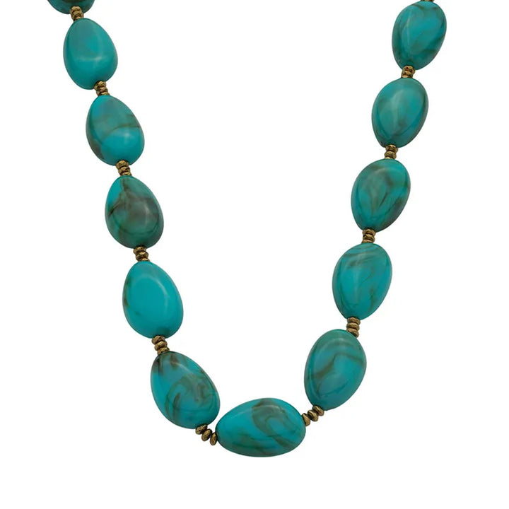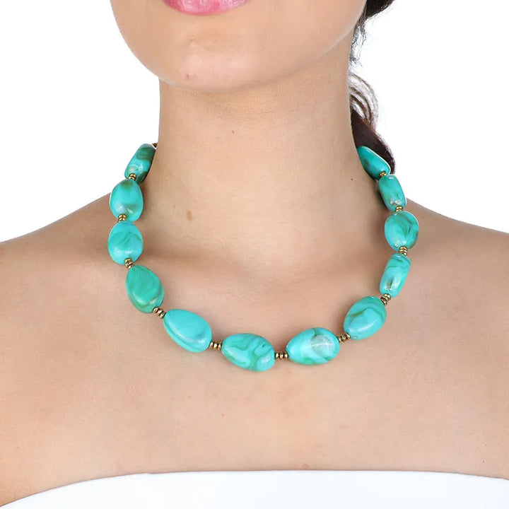 O colar de resina turquesa está super em alta, pode apostar! Você pode usá-lo tanto durante o dia como a noite.
