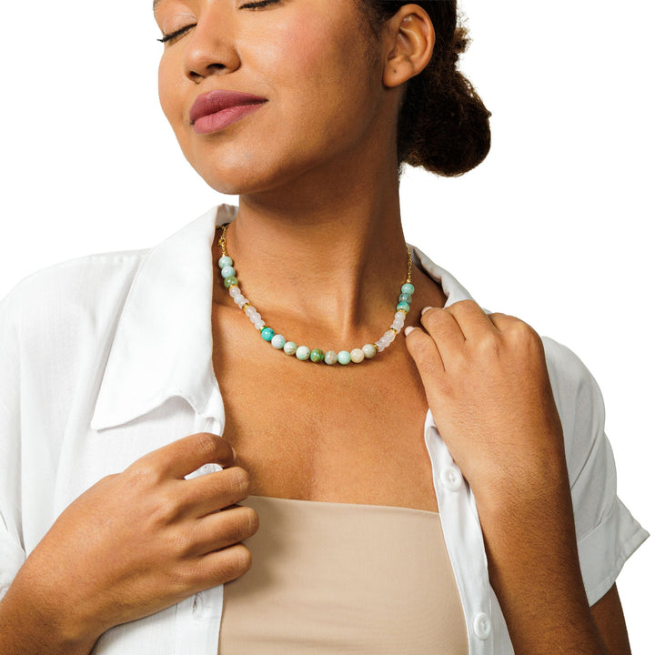 O colar possui pedra natural de amazonita como destaque, acompanhada de uma letra inicial personalizada na lateral e uma sofisticada corrente grumet de 45 cm. Disponível nas versões folheada em ouro ou com banho de prata, a peça une elegância e exclusividade, realçando o tom esverdeado da amazonita em contraste com o brilho do metal. Ideal para presentear ou expressar sua identidade, pode ser usado solo ou em sobreposição. Joia exclusiva Amarylis Semijoias, perfeita para quem busca autenticidade, estilo moderno e um toque pessoal em cada detalhe.