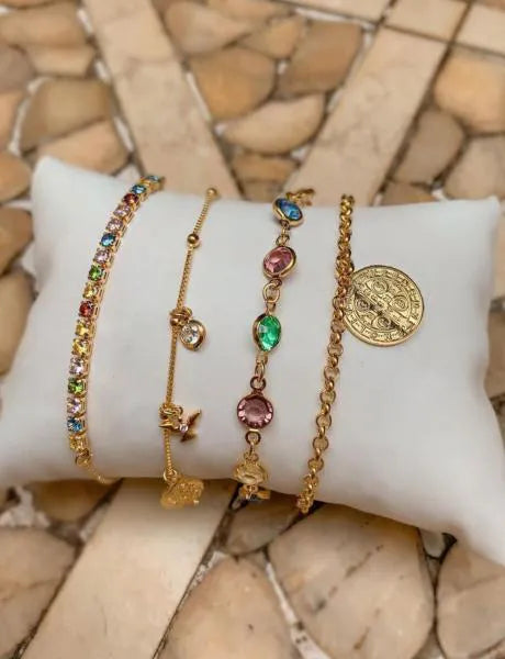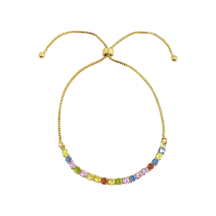 Pulseira ajuste riviera com zircônias coloridas folheada em ouro 18 K